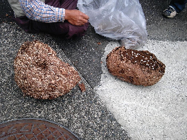 途中、スズメバチ退治をしているおじさんに会って、スズメバチの巣を見せてもらいました(^▽^)