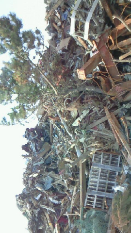 ・津波による流木が散乱して、撤去に難航しております。水分を含むと木材はさらに重くなります。