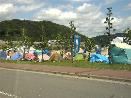 石巻市の作業は壮絶かもしれません。写真は専修大学内に張られたボランティアの方々のテントです。