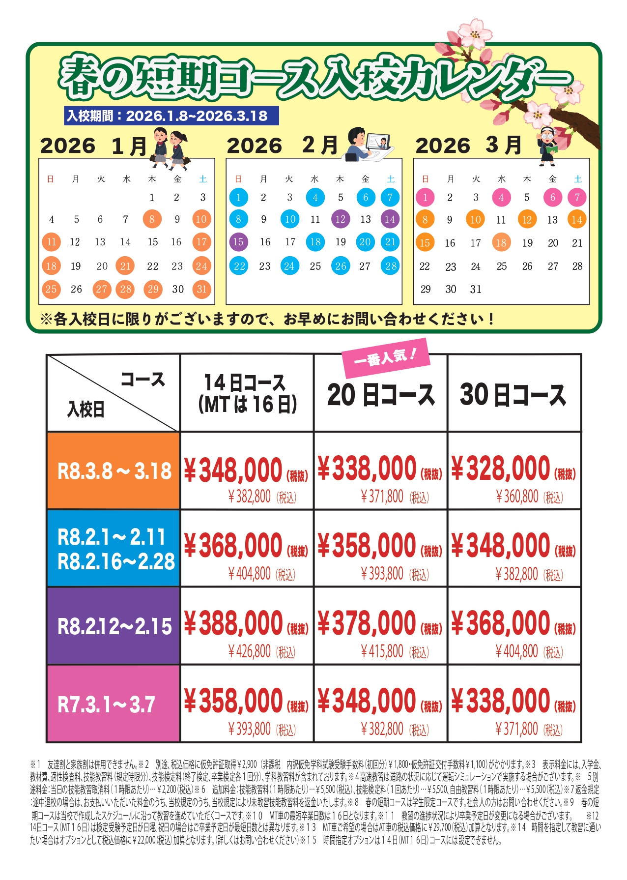 早く免許が欲しいけど自分の時間も欲しい!そんな方におススメです!一番人気のコースとなりますので、お早めにご予約ください。