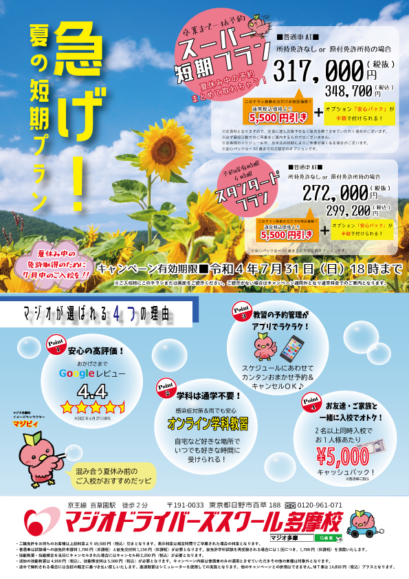 ※2022年7月31日(日)までにご入校いただいたお客様限定となります。