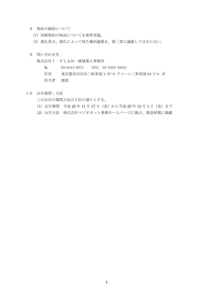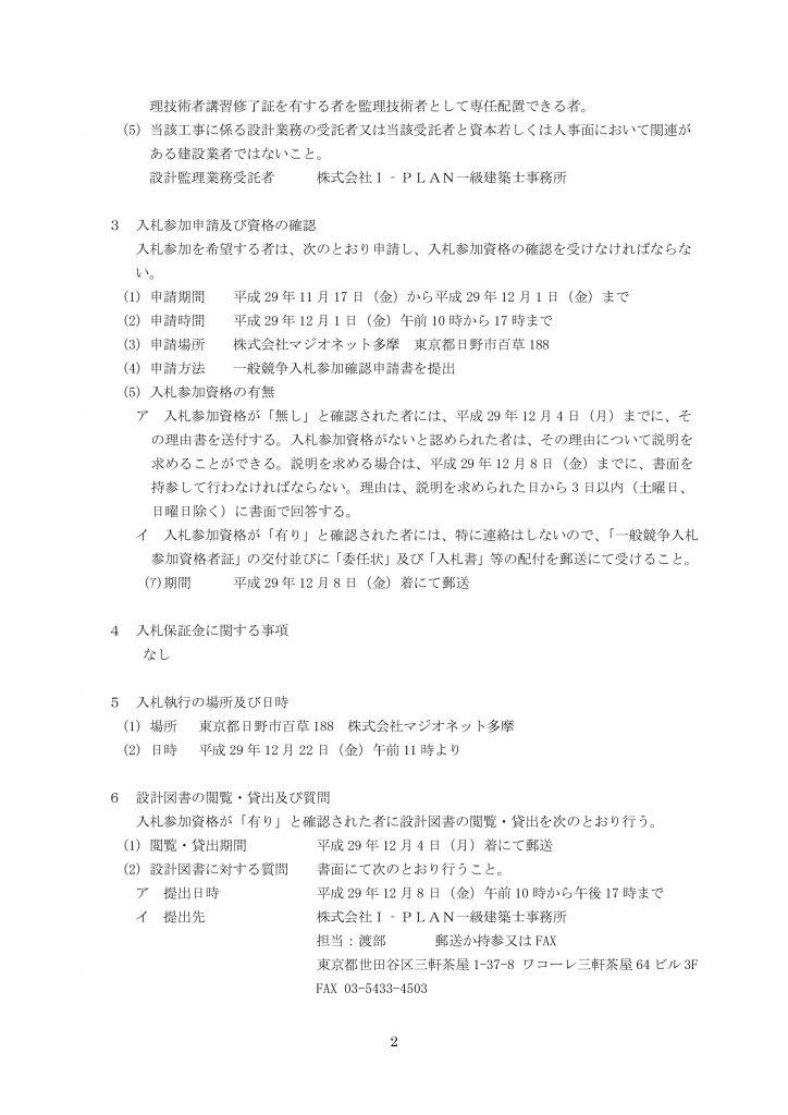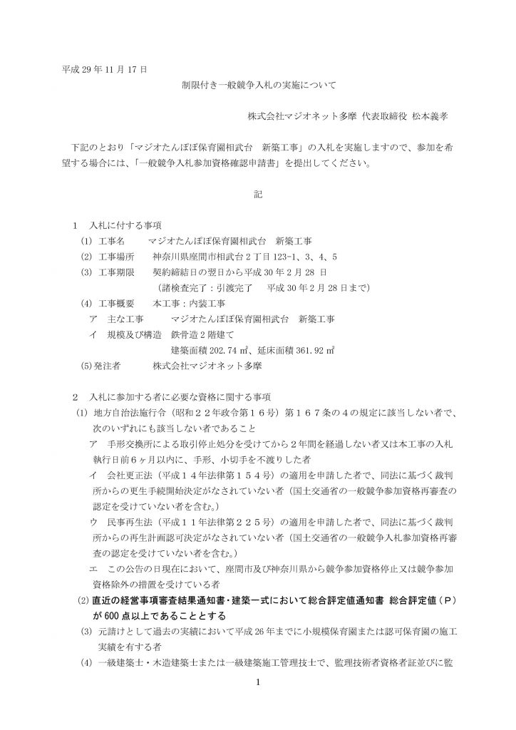 - マジオたんぽぽ保育園 相武台一般競争入札の件