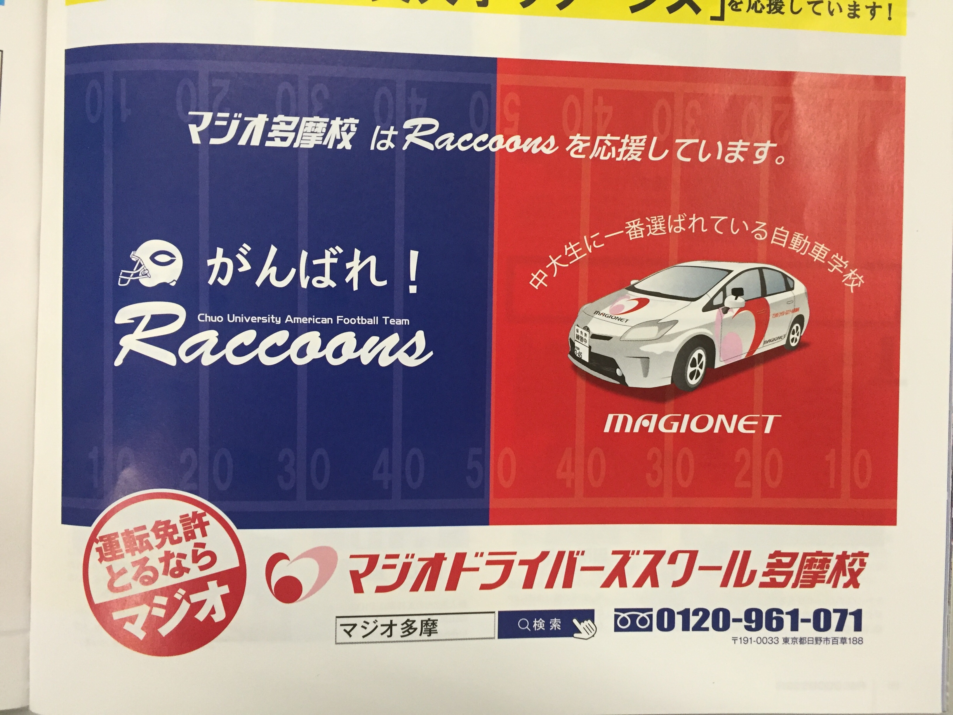 本日は、中央大学のアメリカンフットボール部 ラクーンズの