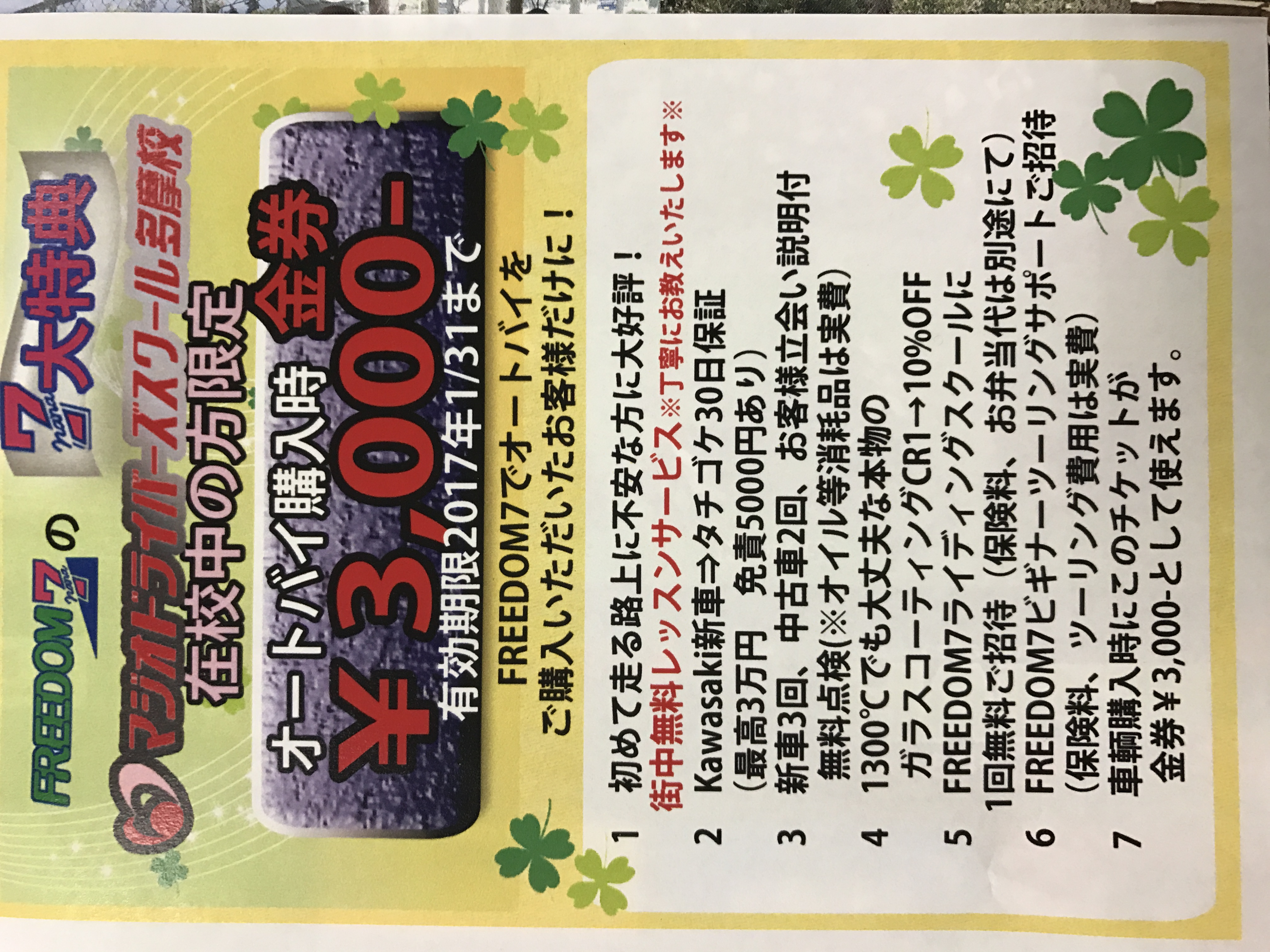 当校の提携バイクショップであるFREEDOM7さんがキャンペーンを