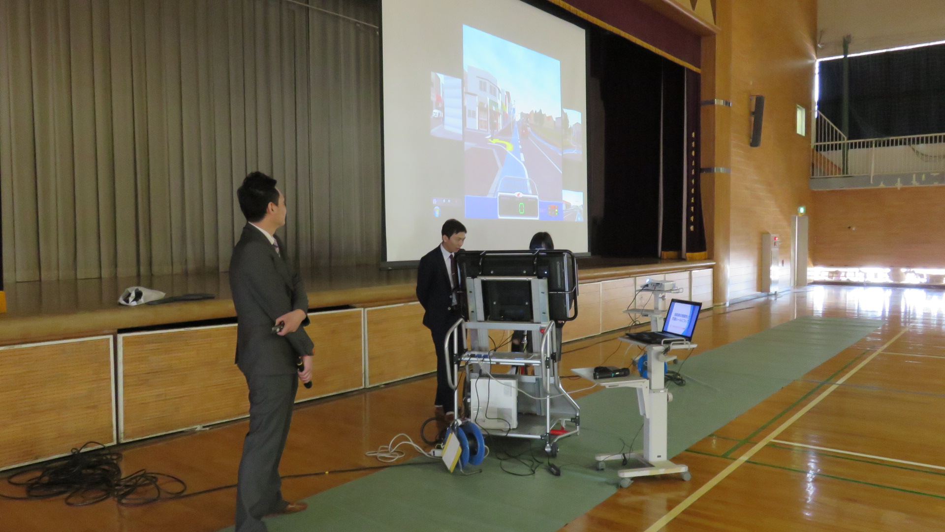 自転車シミュレーターという機材を使用して、自転車の運転を安全に行うことができるのか、学生の皆さんに体験していただきます!