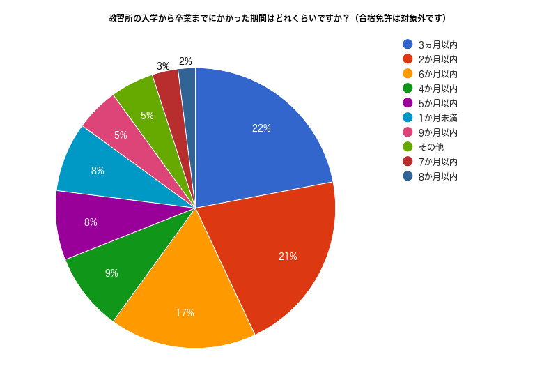 こちらでは、教習所の卒業生を対象に、卒業までにかかった期間についてアンケート調査を実施しました。ぜひ計画を立てる際の参考にしてみてください。