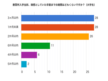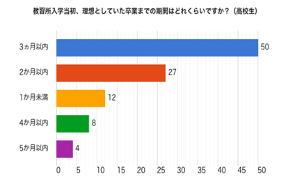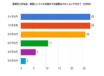 どの年代でも、短めに通い終えることを理想としている方が多い傾向がありました。高校生や大学生の場合は、長期休みに集中的に講習を受ける方が多数を占めています