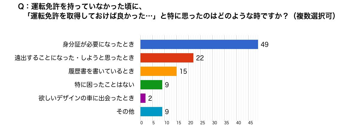 今回のアンケート調査では、免許保持者の方に、免許を持っていないときに取っておけば良かったと感じたのはどんなときか教えていただきました。