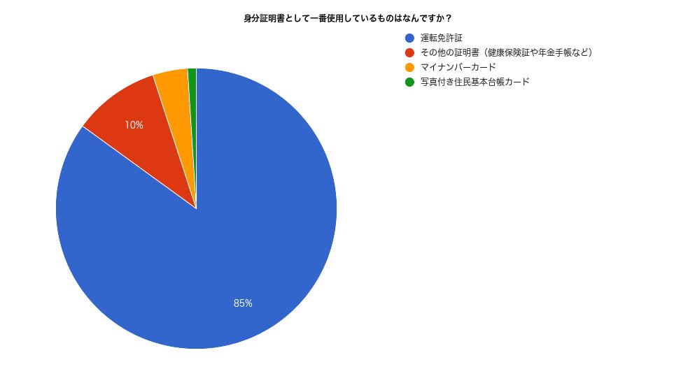 アンケートの結果、身分証明書としてもっとも使われているのは運転免許証であると分かりました。